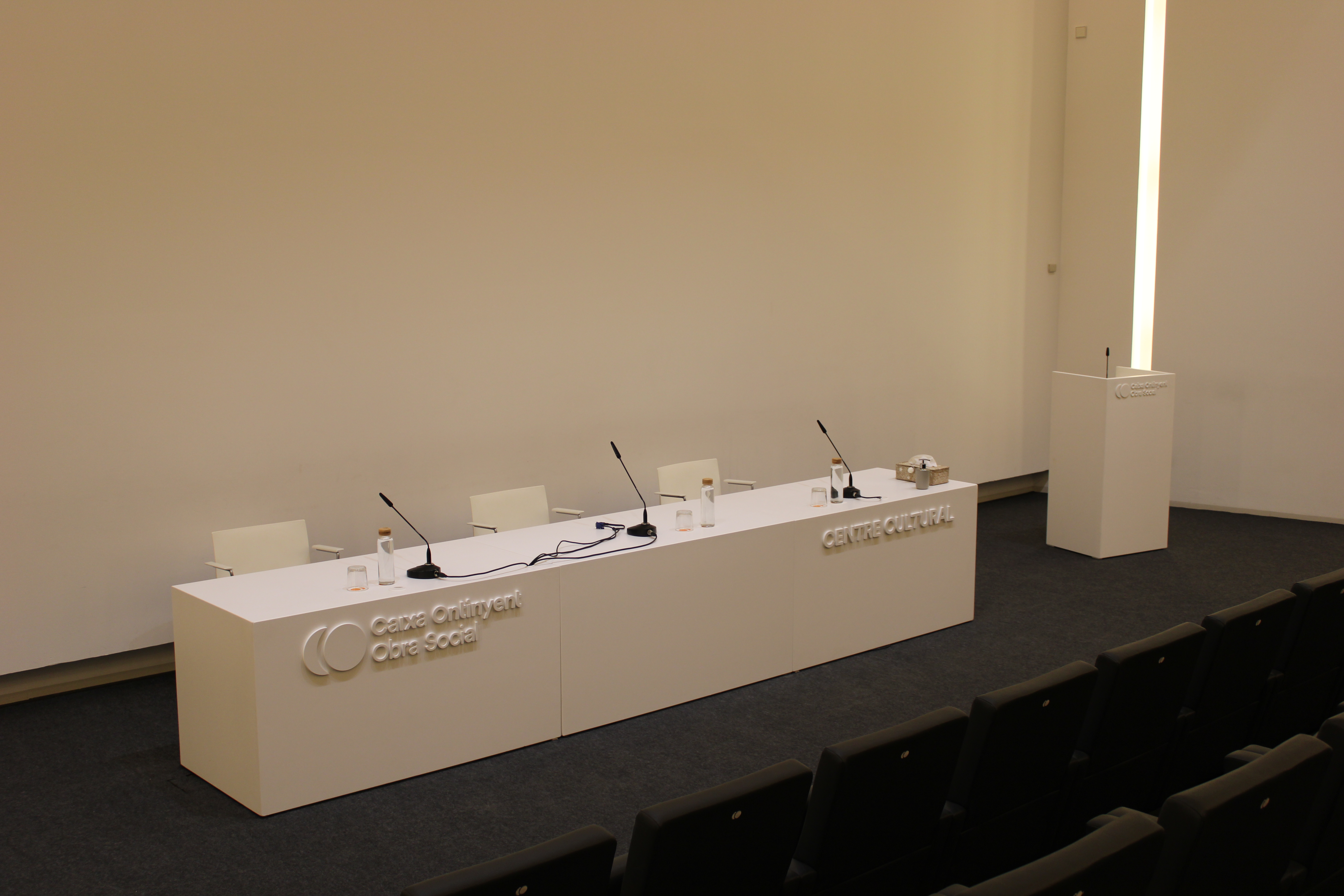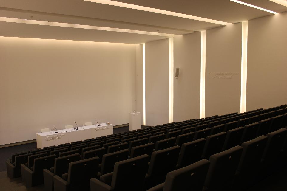 El saló d'actes està pensat per a albergar actes com ara presentacions, xerrades, taules redones, conferències, etc.